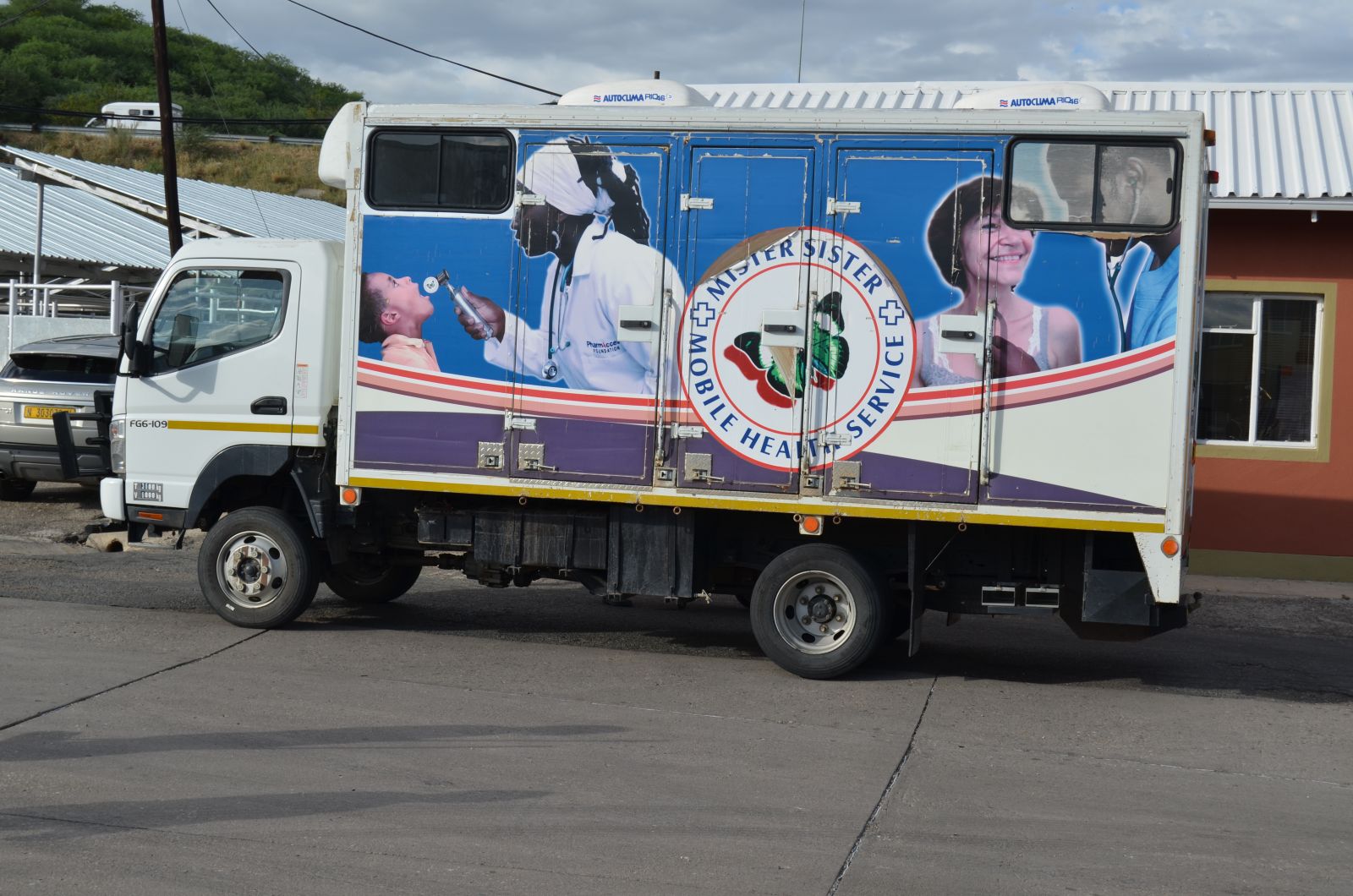 The Mister Sister Mobile Clinic truck, which attended to the dependants of Meatco Employees .